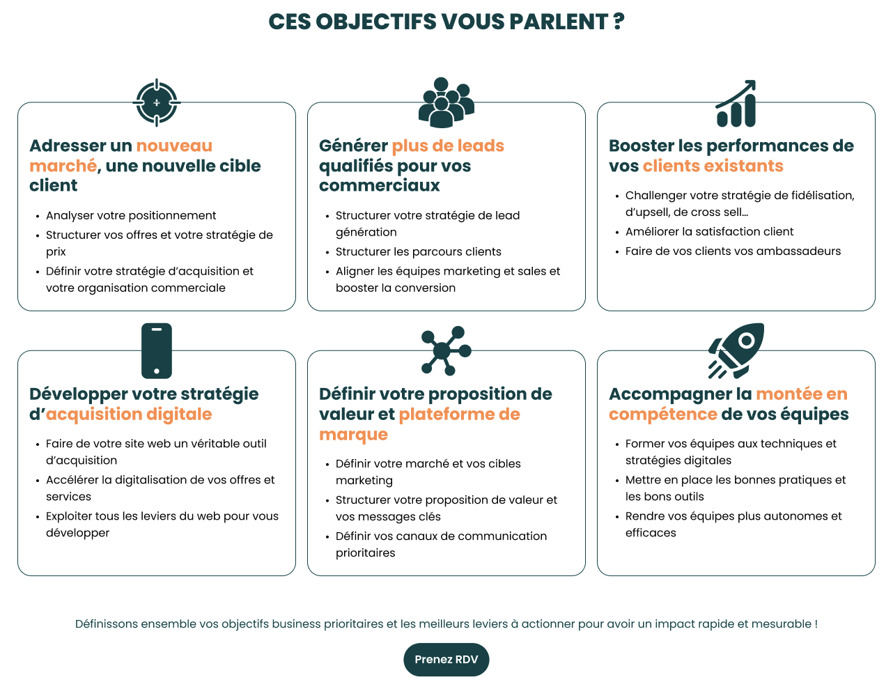 - Présenter clairement l'offre pour qualifier la cible (expertises, formules)