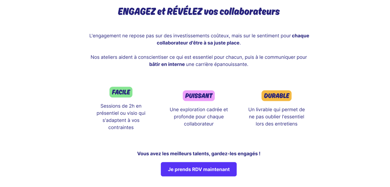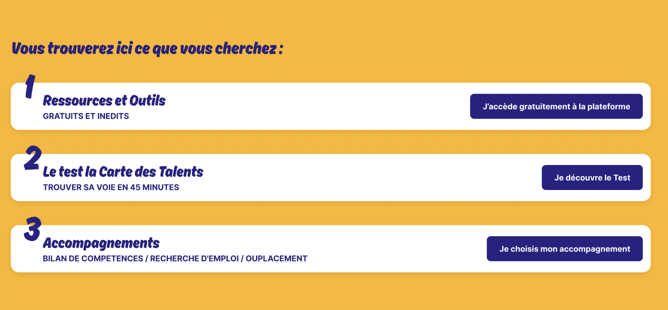 - Structurer le contenu pour mettre en avant les 3 produits La Carte des Talents, de manière claire et convaincante.