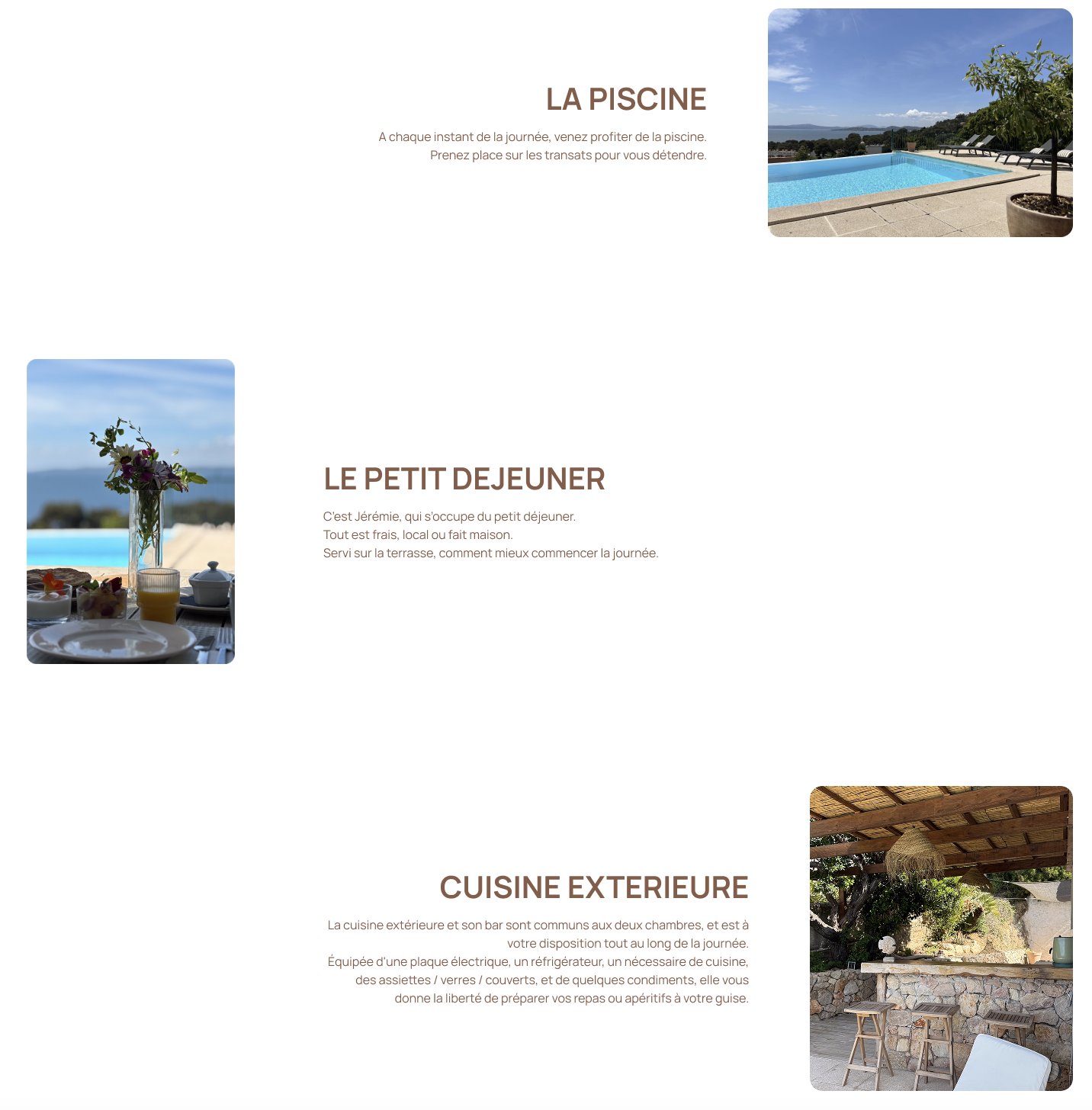 - Créer du contenu qui inspire et projette le client dans son séjour (pages galerie photos, les alentours, accès)